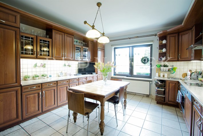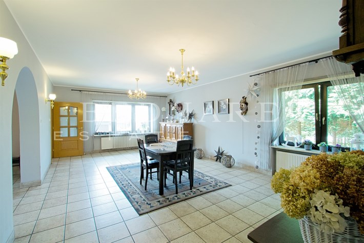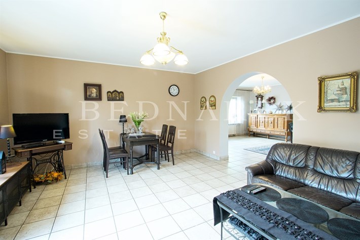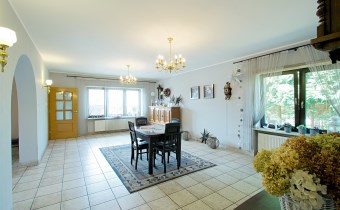 Ten solidny, murowany dom z 1980 roku to idealne połączenie klasycznej architektury i praktycznych rozwiązań. Zachował oryginalny, harmonijny kształt bryły, a jednocześnie przez lata był systematycznie modernizowany i utrzymywany w doskonałym stanie – gotowy, by nowy właściciel mógł wprowadzić się bez konieczności generalnego remontu.