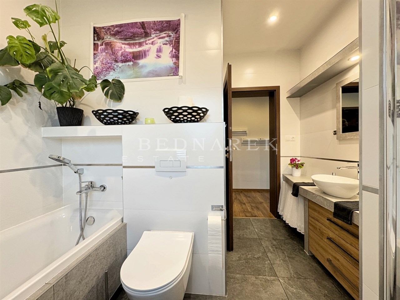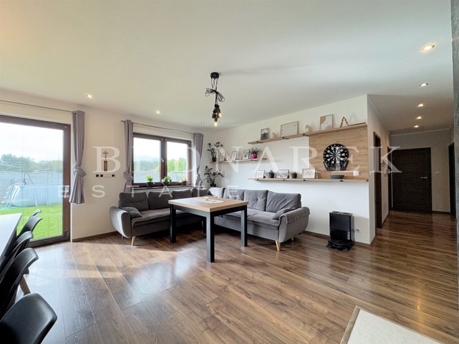 Na sprzedaż parterowy dom jednorodzinny o powierzchni 115 m², wybudowany w 2020 roku, położony na pięknej, ogrodzonej działce o powierzchni 1143 m². Nieruchomość znajduje się w spokojnej okolicy, w sąsiedztwie zabudowy jednorodzinnej, z szybkim dojazdem do Tychów – idealna lokalizacja dla osób ceniących ciszę, bezpieczeństwo i wygodny dostęp do miasta.