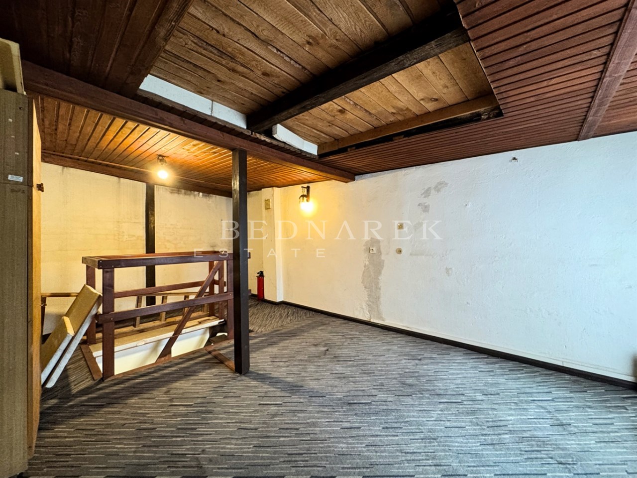 - Funkcjonalny układ: Lokal składa się z przestronnej sali sprzedaży (90,9 m2), biura (18,9 m2), WC (1 m2), magazynu (2 m2) oraz poddasza (24,2 m2), co daje wiele możliwości aranżacji i dopasowania przestrzeni do indywidualnych potrzeb.