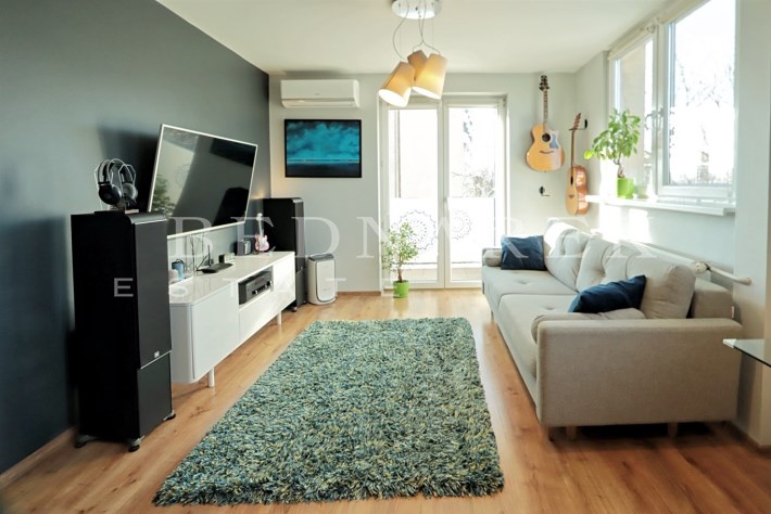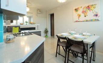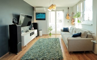 W pokojach odnajdziemy harmonię i wygodę. Pokój gościnny, z widokiem na południowy-zachód, otwiera się na duży balkon, stanowiąc idealne miejsce do relaksu. W gorące dni klimatyzacja utrzymuje przyjemny chłód, zapewniając komfortowy wypoczynek.