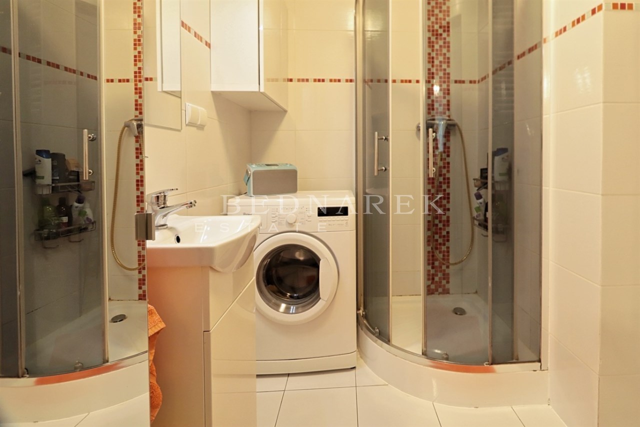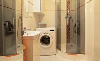 Łazienka z WC i prysznicem została zaprojektowana z dbałością o każdy detal. Wszystkie instalacje w mieszkaniu zostały wymienione, gwarantując bezpieczeństwo i sprawne funkcjonowanie.